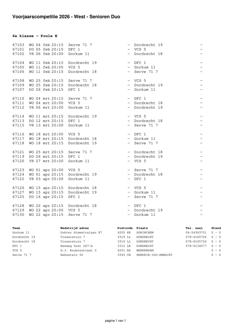 VCS Team 5 duo - Voorjaarscompetitie 2026 - West : 6e Klasse Poule E